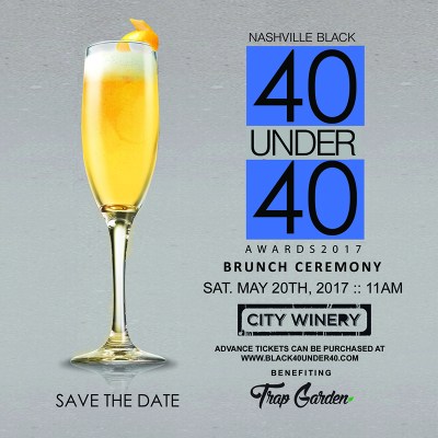 You are cordially invited to celebrate with the winners. This year’s award ceremony will be held at City Winery on Saturday, May 20th from 11am-3pm; it’s BRUNCH y’all! City Winery’s hosts an amazing brunch. The Black 40 Under 40 event presents ticket holders with a brunch buffet! Proceeds from the ticket sales will benefit Trap Garden. Trap Garden is a non-profit program that educates communities about urban gardening and providing healthy options to food deserts.
