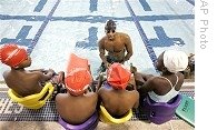 Cullen Jones, rear, talks about water safety to youngsters at pool in Newark, N.J. (Sept 2007 file photo)Cullen Jones is already involved in a USA Swimming organization called “Make a Splash,” which is dedicated to promoting water safety. He now hopes to use his Olympic success to launch what he calls “The Cullen Jones Diversity Tour.” He wants to help educate children, especially minorities, about the importance of learning to swim, not necessarily for speed, but as an important survival skill. He is aware of the recent study sponsored by USA Swimming that showed that 58 percent of black children could not swim, compared to 31 percent of whites.