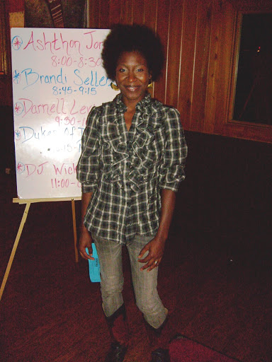 I had the pleasure of listening to this dynamic talent, last night, at the Next Big Nashville Showcase at Limelight. Brandi is the cutest little thing, with a puff of natural curls, and a great voice. She was gracious enough to let me snap a picture of her after her performance last night. You know, I love her ruffle front plaid blouse with grey skinny jeans. Topping the look off with cowboy boots, made the singer bring out the casual chic.