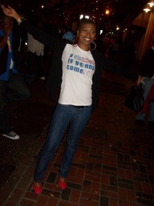 As I stood in downtown Nashville last night, celebrating, I just had to stop and look at the men, grown men, strong young men, who were crying in the streets. They could not believe it. Their hardy laughs were stifled by solemn groans of incredible disbelief and pride; He actually did it! My cousin called me yesterday, she voted at city hall in my hometown of Springfield, MA, and she said she was so overwhelmed to see thugs and corner boys taking off their bandanas and baseball caps, walking into the voting booth and casting their ballots. She remarked, “It was an incredible sight to see.”