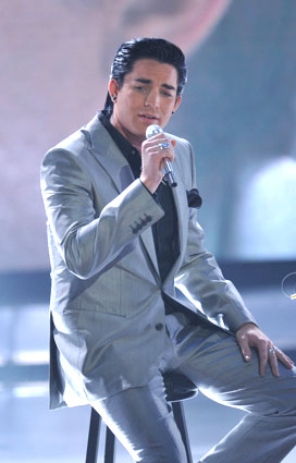 However, you came here for BEST DRESSED. Well, I have to give it to the resident Emo Rocker-boy Adam Lambert, who changed up the game and went classic Elvis on us. He’s already a handsome guy, but looking at the pic below, I didn’t think he could pull off the classic ’60’s crooner look. Well, he did. He’s usually the dude with the black/blue nail polish and super-skinny jeans.