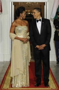 Michelle Obama was absolutely stunning in this Indian-American designer Naeem Khan gown, for the Official State Dinner at the White House. Once again, our first lady looks stunning in this floor length beaded strapless gown. Get em Chelle!