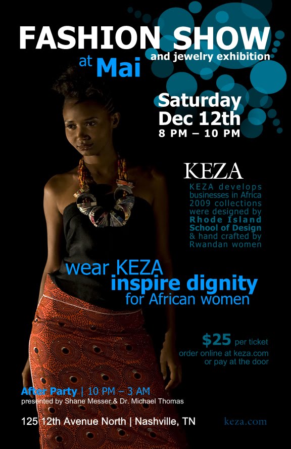 This is going to be a wonderful event for Nashville. I love when businesses can mix entrepreneurial skill with volunteerism and social understanding. Keza does just that. Keza seeks out struggling business owners in African countries and teaches them how to market and make a profit from their designs. Keza’s founder and President, Jared Miller (a Nashville native) took his successful business practices to the continent in 2006. He wanted to help women in poverty by showing them a success model, not just giving them a one-time handout.