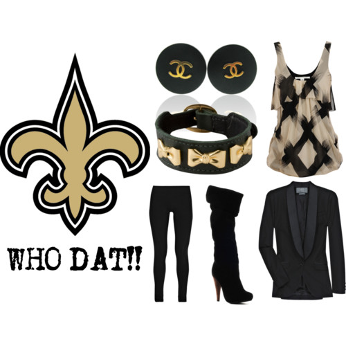 It’s Super Bowl Weekend, and the FabGirls are excited! There will be tons of parties to attend and we want you ladies to be cute and represent the team that you’re rooting for. Casual is the way to go for a Super Bowl Party. For all you Saints fans, we put together a Kim Kardashian (girlfriend of Saints player Reggie Bush) inspired outfit. We combined the team colors, and mixed with Kim’s style. Check it out!
