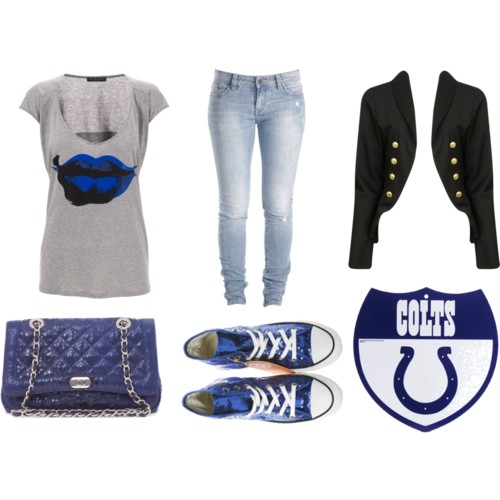 For all of you die-hard Colts fans, this little outfit is for you! Check out the sporty little Chuck Taylors. We’re not even Colts fans, but we’d wear this!