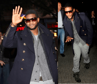 OOH Usher is looking so toasty and handsome as he makes some stops overseas. Loving the peacoat and the weathered military boots. Can all guys take a point from Usher when re-stocking their Fall wardrobe?