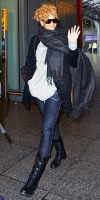 | Rihanna arrives wearing a comfy sweater and black combat boots |