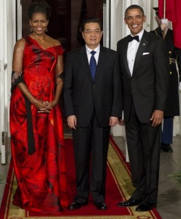 Here she is pictured with Chinese President Hu Jintao, and her husband of course. She looks absolutely radiant!