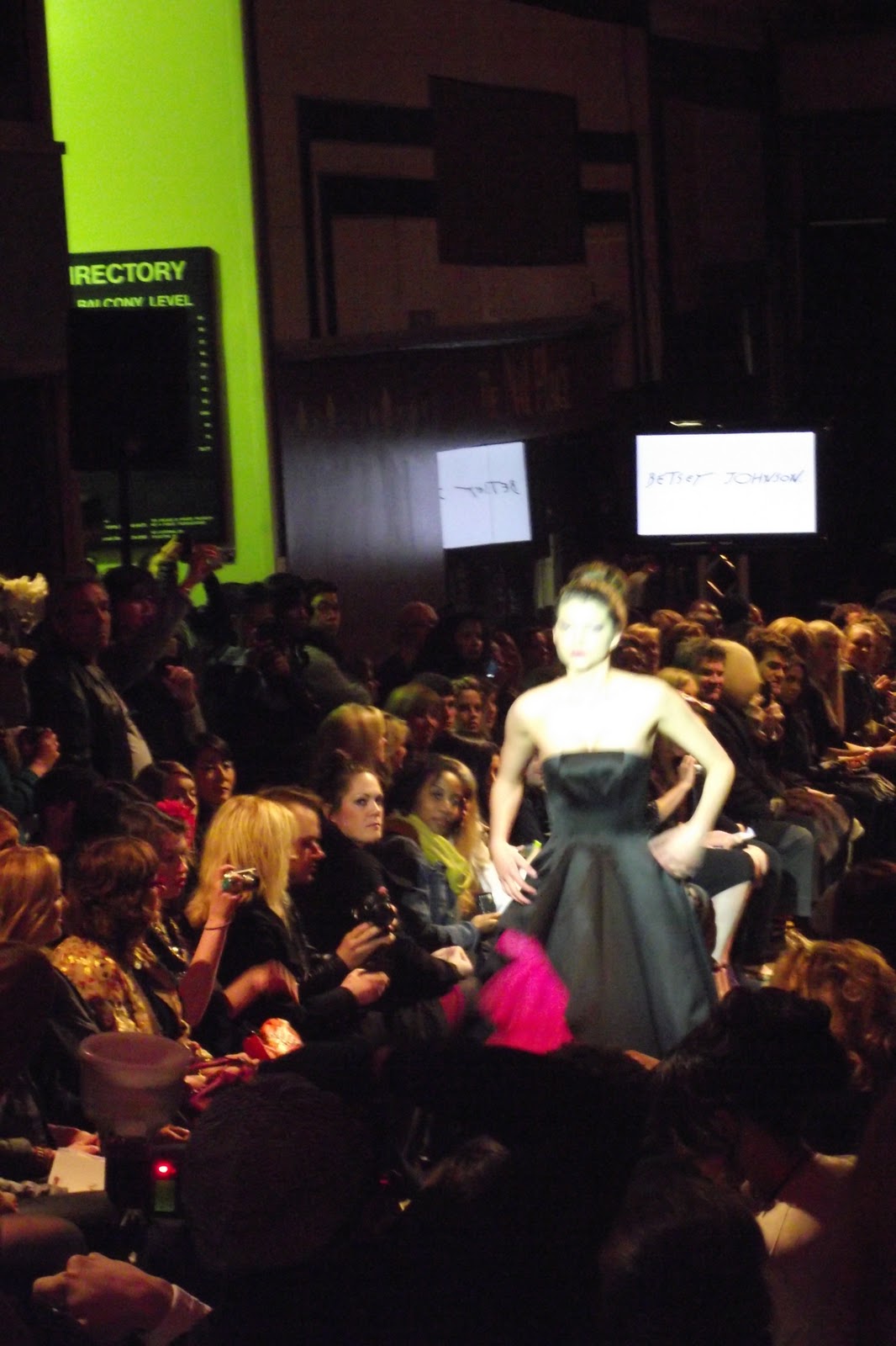 As soon as the lights lifted the beautiful glass and iron structure was illuminated with glorious color. First down the runway was Melissa Tabor. Tabor’s line was created in 2006. This RTW line featured fitted dresses, exposed zipper details, and lovely ladylike appeal. Fab Girl Sabrina and I wanted everything that came down the run way. Her clothes are just so wearable and the style will appeal to most women.