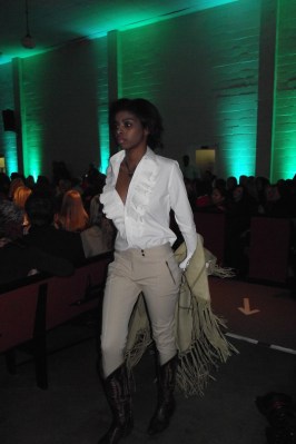Before the grand finale, we viewed Union of Angels presented by Stacey Rhodes. This line was SO Nashville! Let me re-phrase that, this line was so the way people think everyone in Nashville dresses. There were modified cowboy boots, riding pants, and lots of leather bomber jackets. However, a high-waisted pencil skirt caught my attention as well as black dress with draping detail on one arm.