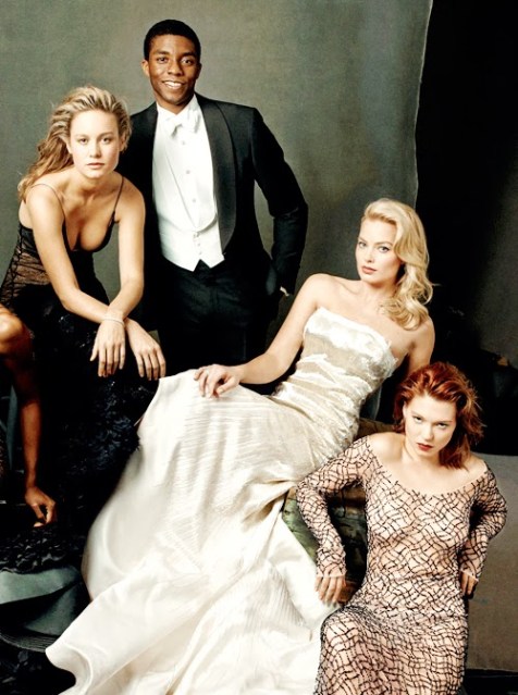 For the 20th annual Vanity Fair Hollywood Issue, the magazine celebrates a year of spectacular film with a group of distinguished actors. The cover, a three-panel foldout by Vanity Fair contributing photographer Annie Leibovitz, features Oscar nominees Julia Roberts (August: Osage County), Chiwetel Ejiofor (12 Years a Slave), Jared Leto (Dallas Buyers Club), and Lupita Nyong’o (12 Years a Slave), as well as Idris Elba (Mandela: Long Walk to Freedom), George Clooney (Gravity), Michael B. Jordan (Fruitvale Station), Naomie Harris (Mandela: Long Walk to Freedom), Brie Larson (Short Term 12), Chadwick Boseman (42), Margot Robbie (The Wolf of Wall Street), and Léa Seydoux (Blue Is the Warmest Color).