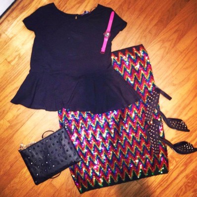 For the first night I decided to go for a glam and sparkly look. Like, seriously, I’m so in love with this skirt! The skirt and peplum skirt are from Asos.com the ‘Curve’ line. Both pieces were on sale but aren’t avalible anymore. Sorry! The shoes I purchased from Torrid during a Black Friday sale. The shoes were only $15! And of course, they are no longer available. I’m the type to purchase clothes and save them to the next season.