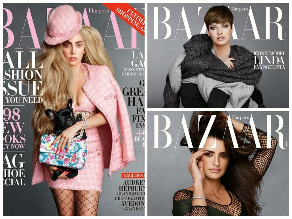 The trend this years is if you can’t have one ulta FAB cover, lets have two or three! Harper’s Bazaar is giving fashion, music, and screen gems in the Carine Roitfeld article “Unmistakable, Unforgettable, Always in Fashion: ICONS”. The three covers feature Lady Gaga, Linda Evangelista, and Penelope Cruz. Shot by Sabastian Feana, the icons are dressed all the way UP in Fall 2014 luxury collections. Very fly!