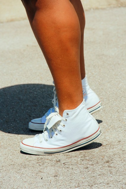 These are my very favorite white converse Chuck Taylor All-Star hightops. I found these on (a now defunct) vintage website. I’m not much of a vintage/thrift shopper, but I’m working on it. However, I know a good deal when I see it. I had to snap these up. Every girl needs a pair of chucks, I just happen to have like … eight pairs!