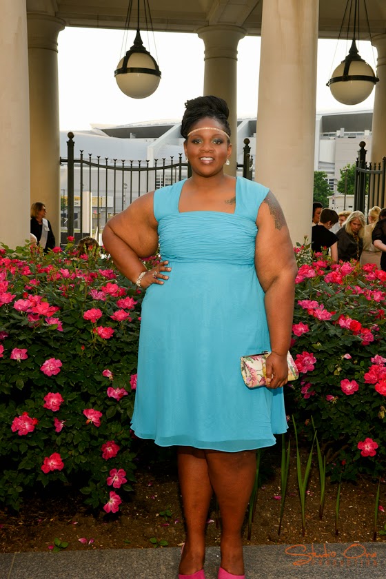 So, I found out I was going to the show a WEEK before the date. I didn’t have any time to purchase a new dress so I had to hit up the closet. I almost forgot about the Donna Ricco dress that I’ve had for almost six years. The blue color was a great pop for a wonderful spring day. I paired the look with fuschia shoes from Torrid and a floral clutch from Franchesca’s.