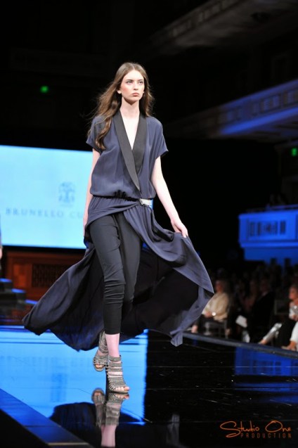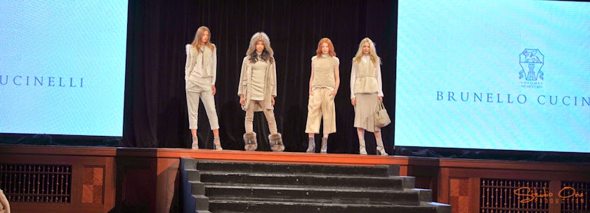 This year’s show featured looks from Italian designer Brunello Cicinelli. The fall/winter designs showcased cozy, comfortable and chic looks great for the cool climate. It’s winter clothes, but so luxe you just want to die. Cashmere stoles, amazing sweater dreses, and comfortable jumpsuits – all in uber trendy colors like stone, grey, and winter white. Usually a grand fashion presentation, this year’s show was simplicity chic with understated elegance.