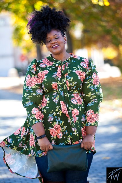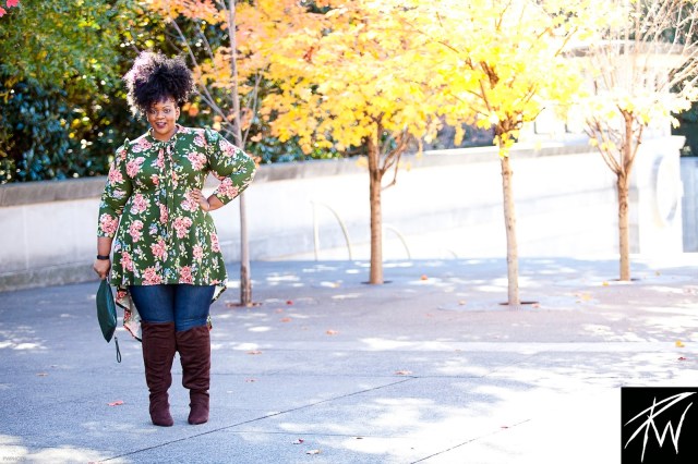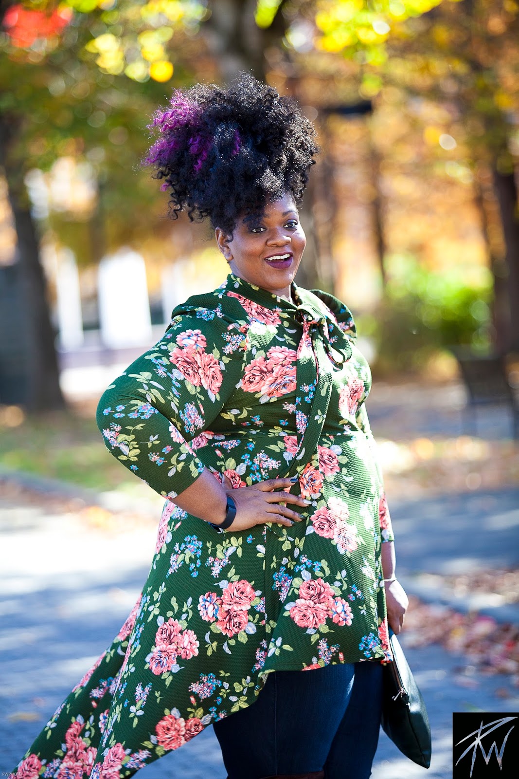 | Dress: Limonada Couture, Jeans: Torrid, Boots: Jessica London, and Bag: Forever 21 |