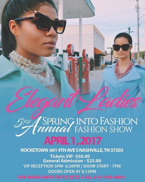 - Kick-off to Fashion Week – Nashville Fashion Week starts April 4th. The Elegant Ladies show is on April 1. This is the perfect kick-off to the week. Get all the fashion you need in one amazing month.