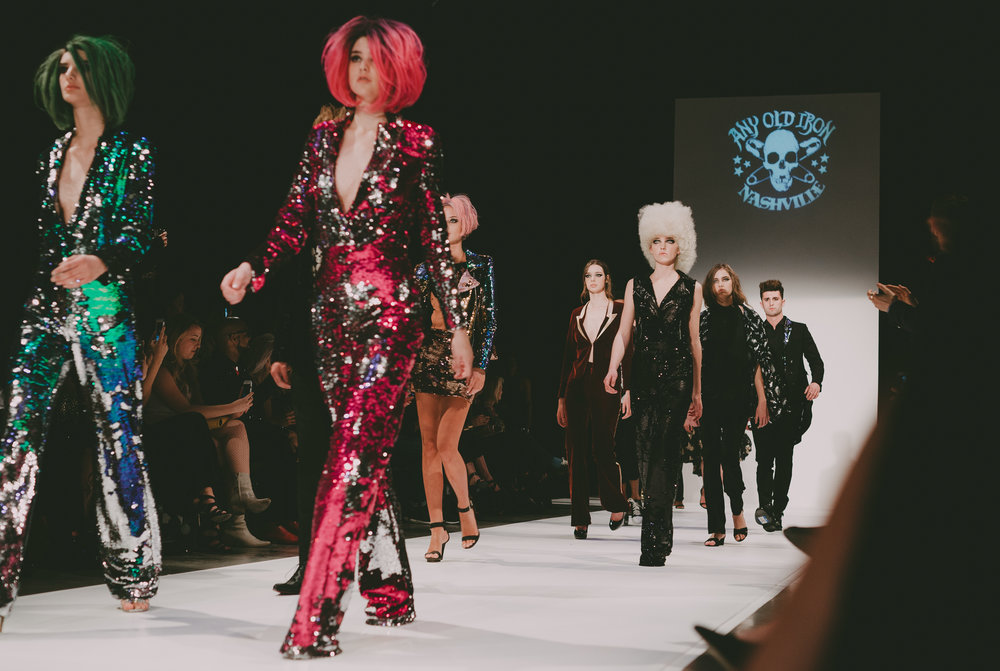 Everything about Any Old Iron – The Nashville Designers Showcase is always a delight. Truthfully, I’d seen all the designers previously so I wondered what they’d have to offer. Well the designers didn’t disappoint, but the standout star of the night was Any Old Iron. Sequins, skulls, and tuxedos, OH MY (especially the sequin). From the designs to the overall presentation, the Any Old Iron showcase was a favorite among all the guests.