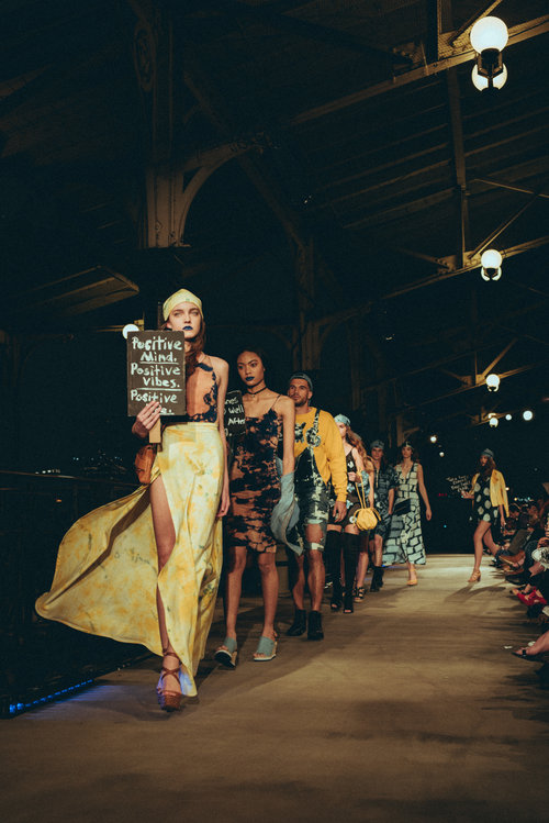 Splashed by DKG is an up-cycled denim line with a big attitude! I had the chance to talk to the designers, Daniel and Derek, and they told me the spirit behind the line. The pair turn ‘everyday looks’ into runway worthy pieces. They strive to make customer feel like celebs as each piece is handmade and custom. Their presentation was part motivational protest and part inspirational amazingness.