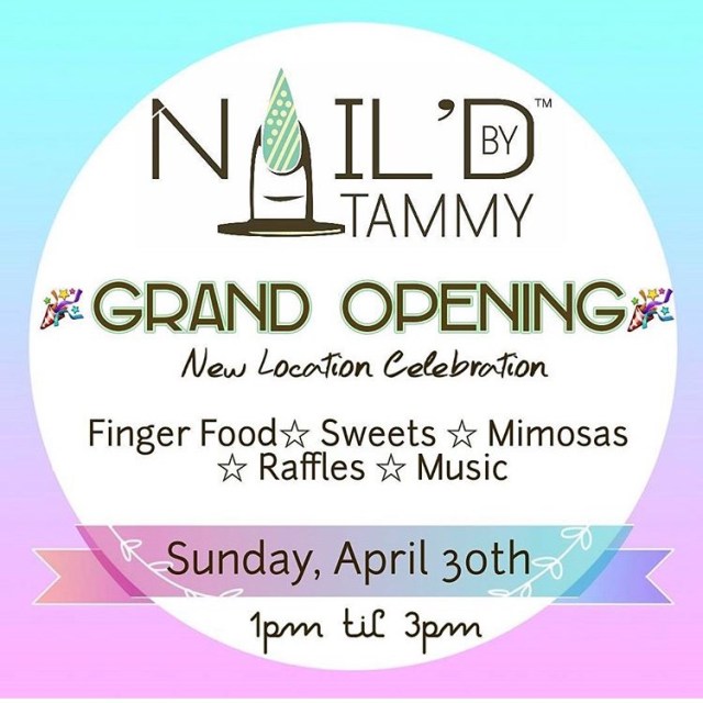 Oh, let me tell you about her shop. It’s great. Every customer is appointment only. You get one-on-one time with Tammy and it feels like an oasis. She’s timely, professional, and has a great attitude. Wanna know more about Nail’d By Tammy? She’s hosting a GRAND OPENING of her new location – 5314 Mt. View Rd. #5332, Antioch, TN.