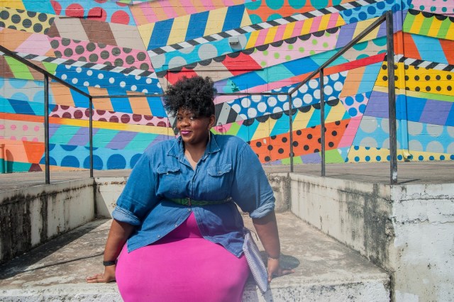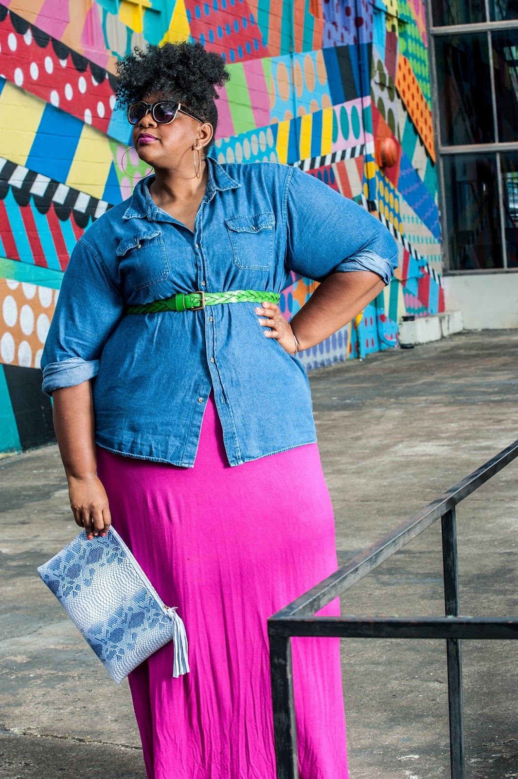 | THE LOOK: Dress – Target, Shirt – Walmart, Belt – Vintage, and Clutch – Violet Flower Boutique |