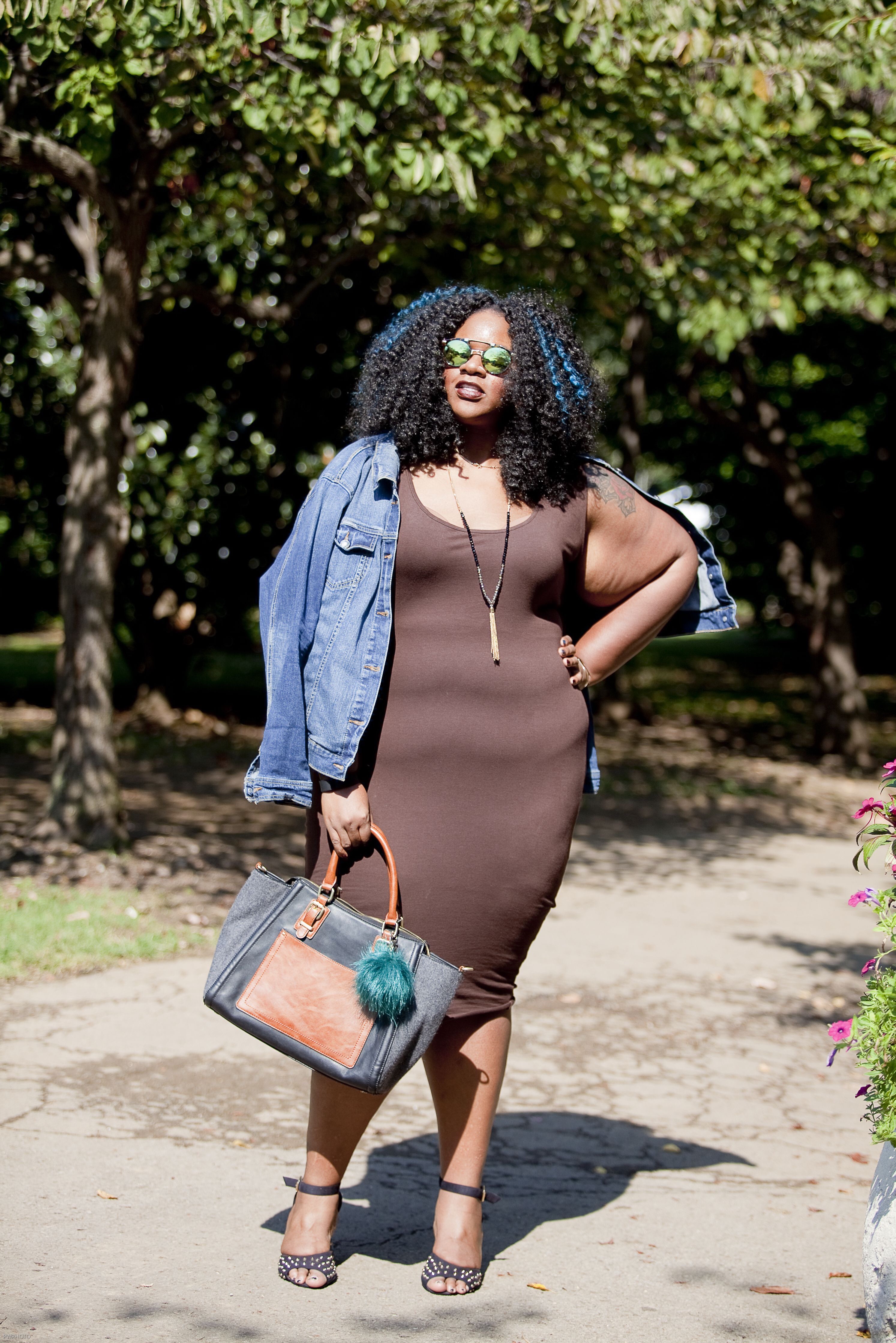 Using layering techniques to update your fall transition style is KEY! This brown bodycon from Rebdolls is a great piece to take me from summer to fall in the south. With the addition of a good denim jacket, I can hit to twin for girls night and look seasonally appropriate.
