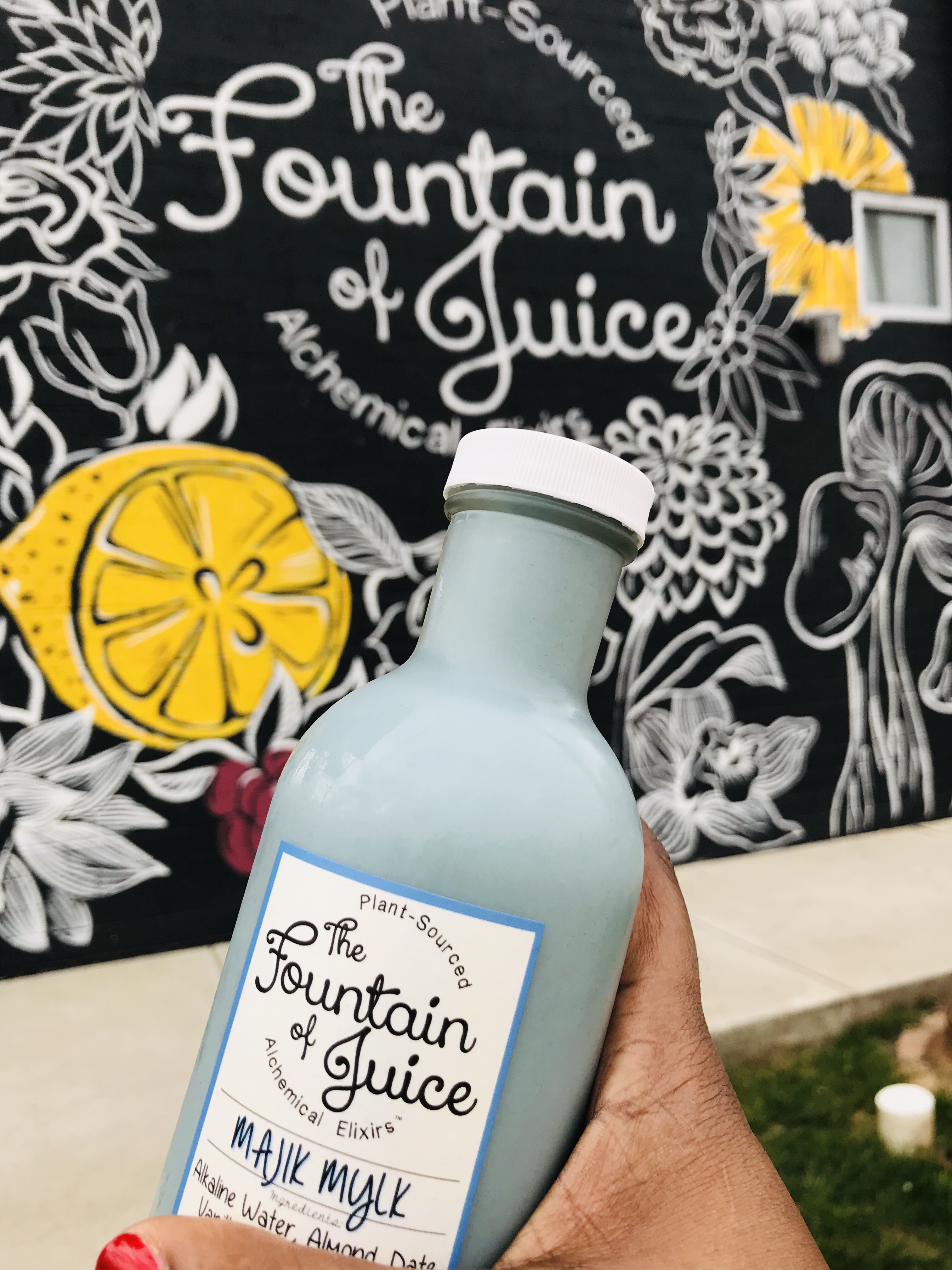 A couple weeks ago I decided to try Fountain of Juice for the first time. I was actually running early for work and Fountain of Juice has a location in the Nations area of North Nashville. It’s a cute little spot that holds all your Juice needs. I walked out with this blue Majik Mylk (almond milk, vanilla, blue algae, chia seed, and dates) situation and vowed to come back! The drink was so tasty!