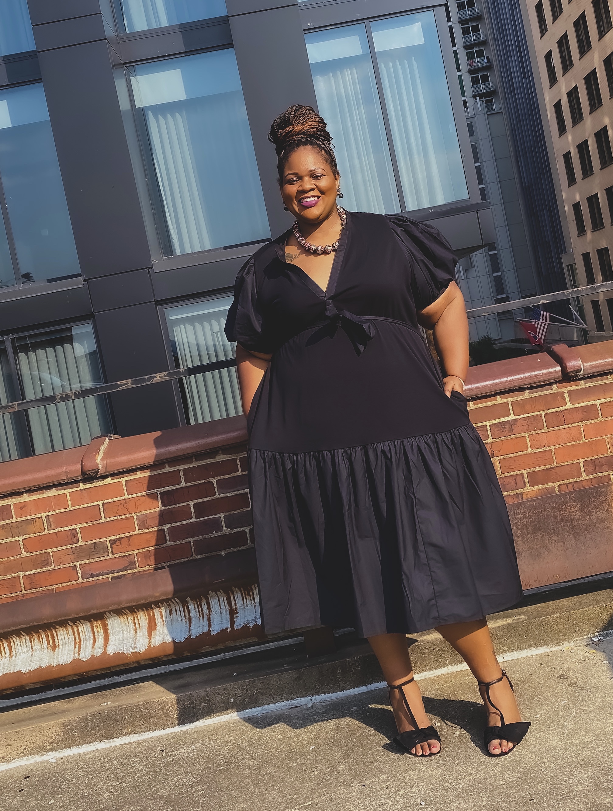Browsing on Target.com I came across this black puff sleeve dress from WHO WHAT WEAR. The puff sleeves and drop hem gave me everything I needed. I ordered the dress immediately! Come to find out, it has pockets too! This is a dress for the office, brunch, or a night out. I love a black dress that gives me a ton of options.