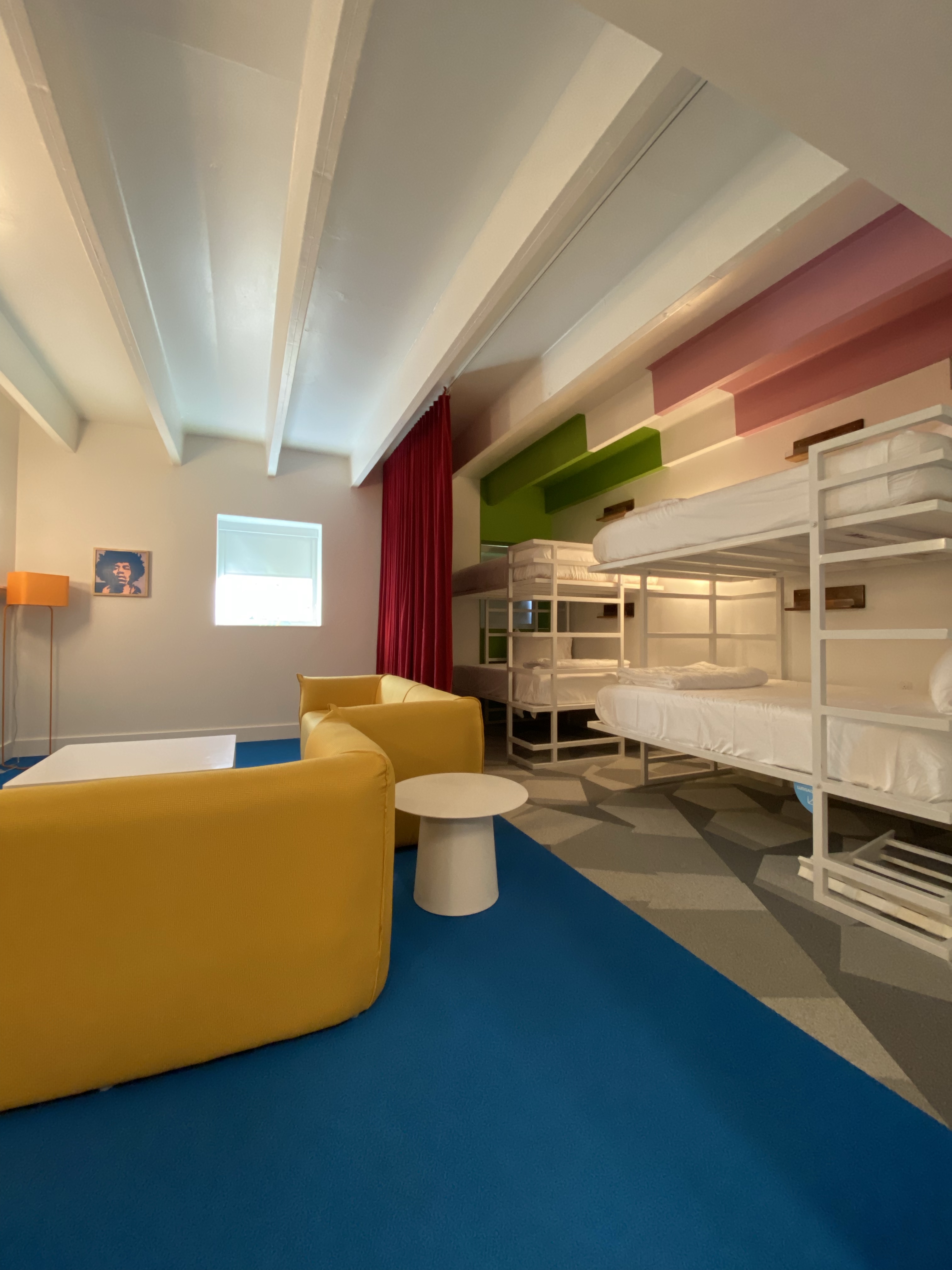 The Gallatin Hotel is super colorful. Every turn is insta-worthy. Especially the cool rooms. The Blogger Exchange influencers got to stay in the Gallatin Hotel Double Bunk Suite. It’s just the most fun design and the beds are actually super comfy. The rooms have mini-kitchens, full bathroom with shower, and streaming services in each room. Definitely a great room for a girls night slumber situations.