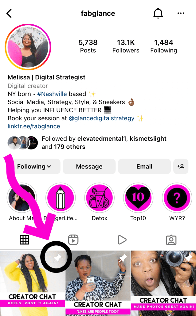 Believe it or not, followers do leave the timeline (or stories) to come to you page. Having your TOP 3 important posts pinned to your profile is an excellent way to showcase who you are.